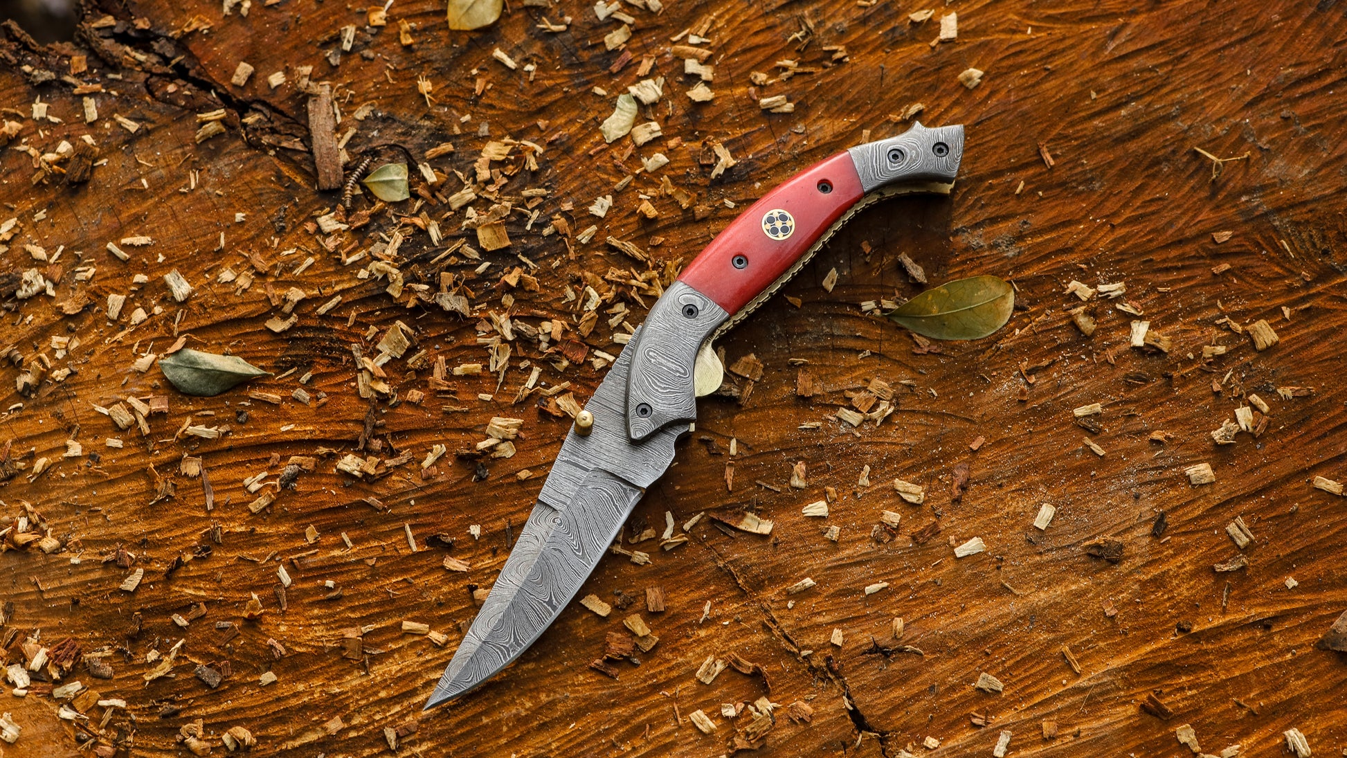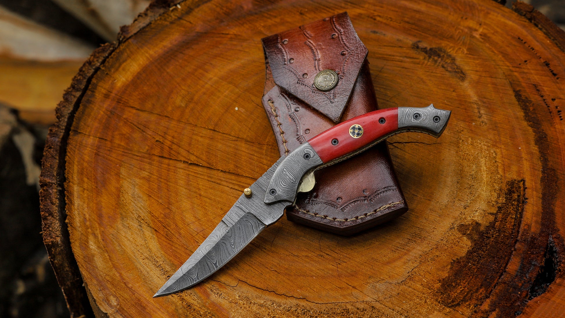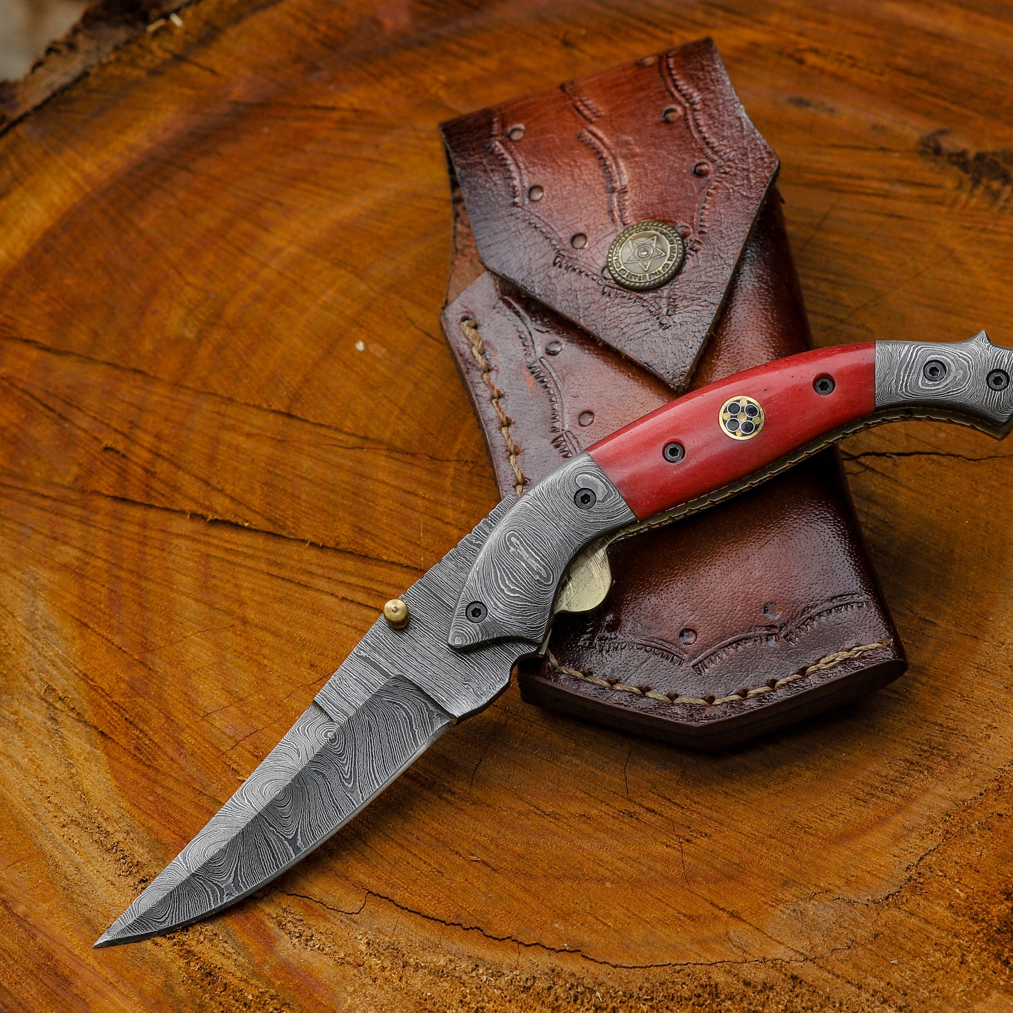 Ember Pocket Knife – Deep Crimson Camel‑Bone Handle
