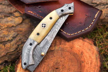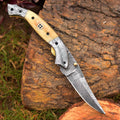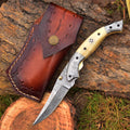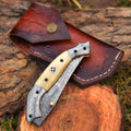 Handmade Damascus Pocket Knife with Camel Bone Handle